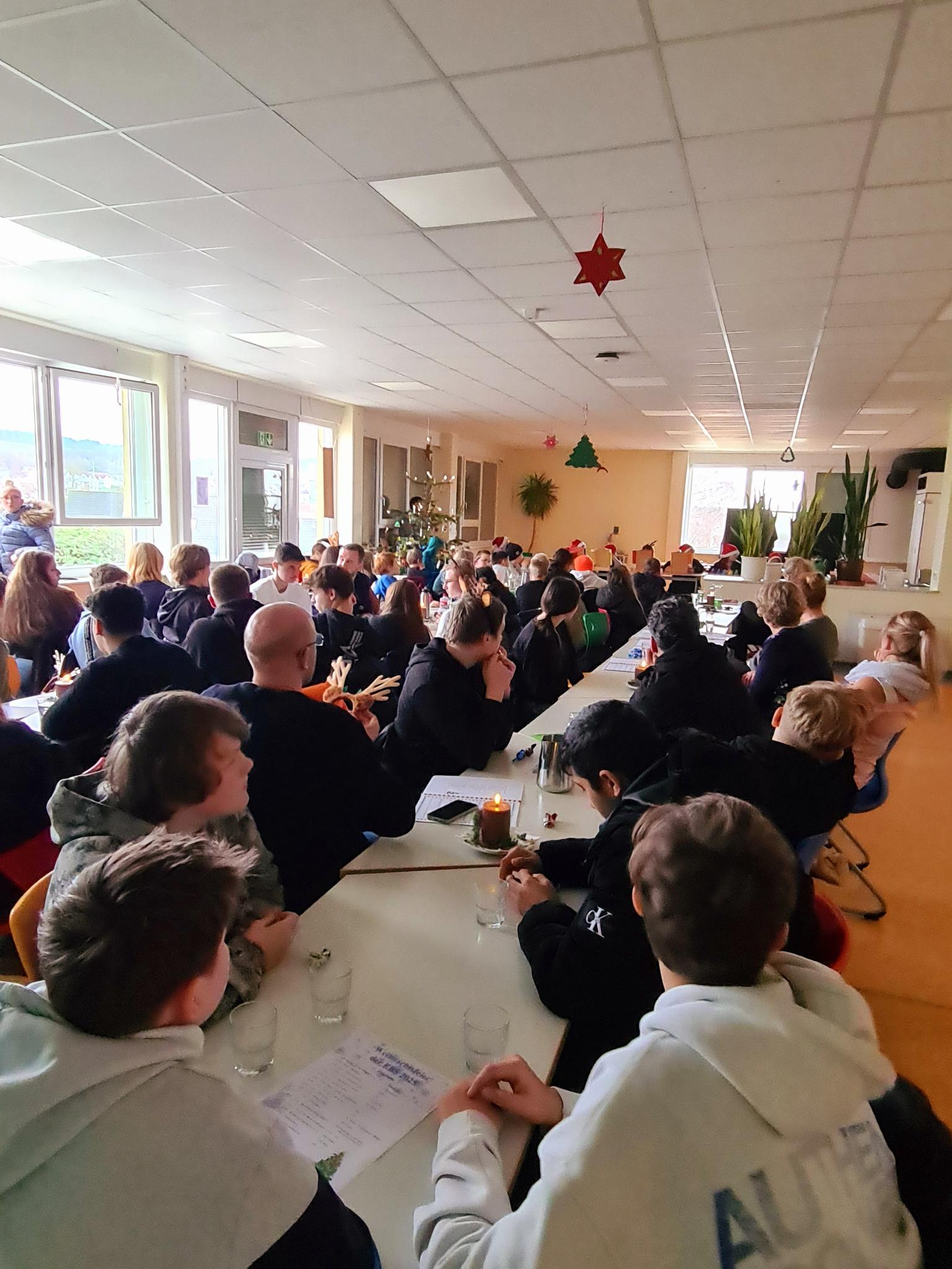 Am Donnerstag, den 18.12.2025 fand die Weihnachtsfeier der EBS statt. Ein pickepacke volles Programm lies in der Cafeteria, von 10 Uhr bis 12:30 Uhr, reichlich Weihnachtsstimmung aufkommen. Nach der Begrüßung durch den Schulsprecher Benny erfreute die G/M mit einem Schattentheater. Es folgte die Weihnachtsansprache von Frau Schuller, ein Weihnachtstanz der Tanz-Mädels und eine Castingshow, bei dem das neue „Super Rentier“ gesucht und gefunden wurde. Ein Weihnachtsquiz lud die gesamte Schulgemeinschaft zum Miträtseln ein. Musikalisch wurde die Weihnachtsfeier von Frau Allmeroth an der Gitarre begleitet und durch ein Glockenspiel der G/M, sowie den EBS-Chor, der „in der Weihnachtsbäckerei“ zum Besten gab, bereichert. Nach dem gemeinsamen Essen, das von allen Klassen der EBS vorbereitet wurde, folgte die Bescherung, die viele leuchtende Kinderaugen hervorrief. Vielen Dank an alle, die an diesem tollen Programm der Weihnachtsfeier mitgewirkt haben. Es war großartig. Weihnachten kann kommen.