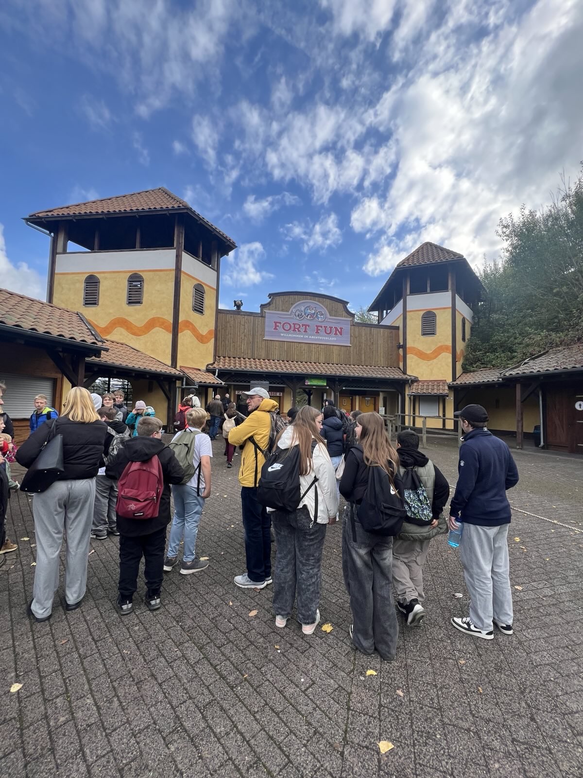 Am Dienstag, den 30.09.2025, machte sich die gesamte Schulgemeinschaft der EBS auf den Weg nach Bestwig ins FORT FUN Abenteuerland. Gegen 08:30 Uhr wurden wir von einem Reisebus abgeholt. Die Stimmung war von Anfang an voller Vorfreude und Neugier. Nach der Ankunft im Freizeitpark durften wir uns in Dreiergruppen frei bewegen und die zahlreichen Attraktionen erkunden. Für einige von uns war es das erste Mal im FORT FUN – und wir wurden nicht enttäuscht! Zu unseren persönlichen Highlights zählten:die Sommerrodelbahn, der Dark Raver, Yakaris rutschige Wasserfälle, Speed Snake Free, Big Wheel, die Marienkäferbahn, Crashund Devil’s Mine. Zwischendurch stärkten sich viele von uns mit Pommes, Snacks oder einem Eis – und natürlich durfte auch das ein oder andere Souvenir nicht fehlen. Um 15:30 Uhr trafen wir uns alle wieder am Riesenrad, wo wir gemeinsam den Rückweg antraten. Gegen 16:00 Uhr ging es mit dem Reisebus zurück nach Homberg, und um 18:15 Uhr kamen wir müde, aber glücklich wieder an der Schule an. Es war ein fantastischer Tag voller Spannung, Freude und Adrenalin, den wir so schnell sicher nicht vergessen werden. Ein großes Dankeschön an alle, die diesen Ausflug möglich gemacht haben!
