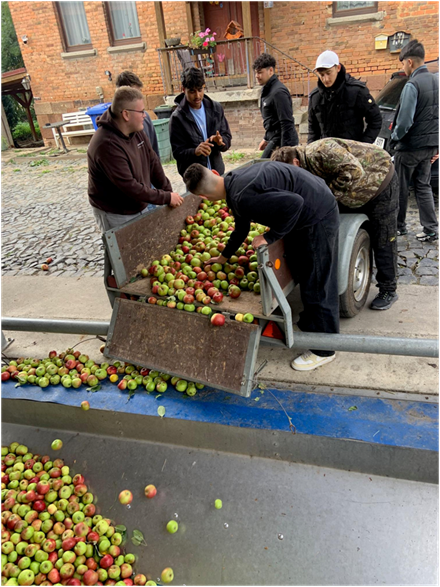 Vom 17. bis 19. September fanden an der EBS die Herbsttage 2025 statt. Am Mittwoch pflückte und sammelte die gesamte Schulgemeinschaft der EBS Äpfel in Holzhausen. Insgesamt kamen über 620 kg Äpfel zusammen. Am Donnerstag und Freitag konnten sich die Schülerinnen und Schüler in folgende Angebote einwählen: Apfelsaft pressen und rund um Homberg; Der Natur auf der Spur; Kochen und Aktivitäten rund um den Herbst; Skateboard; Wandern mit und ohne Alpakas.