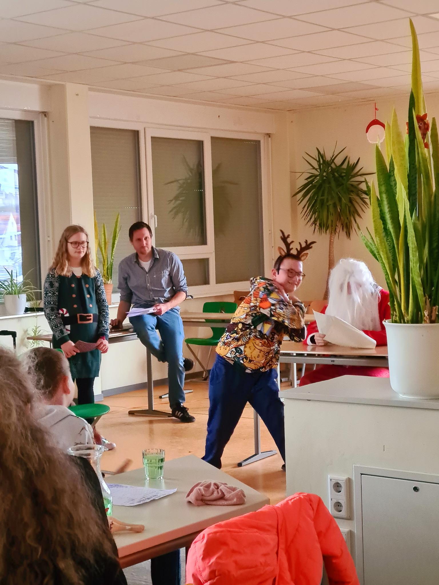 Am Donnerstag, den 18.12.2025 fand die Weihnachtsfeier der EBS statt. Ein pickepacke volles Programm lies in der Cafeteria, von 10 Uhr bis 12:30 Uhr, reichlich Weihnachtsstimmung aufkommen. Nach der Begrüßung durch den Schulsprecher Benny erfreute die G/M mit einem Schattentheater. Es folgte die Weihnachtsansprache von Frau Schuller, ein Weihnachtstanz der Tanz-Mädels und eine Castingshow, bei dem das neue „Super Rentier“ gesucht und gefunden wurde. Ein Weihnachtsquiz lud die gesamte Schulgemeinschaft zum Miträtseln ein. Musikalisch wurde die Weihnachtsfeier von Frau Allmeroth an der Gitarre begleitet und durch ein Glockenspiel der G/M, sowie den EBS-Chor, der „in der Weihnachtsbäckerei“ zum Besten gab, bereichert. Nach dem gemeinsamen Essen, das von allen Klassen der EBS vorbereitet wurde, folgte die Bescherung, die viele leuchtende Kinderaugen hervorrief. Vielen Dank an alle, die an diesem tollen Programm der Weihnachtsfeier mitgewirkt haben. Es war großartig. Weihnachten kann kommen.